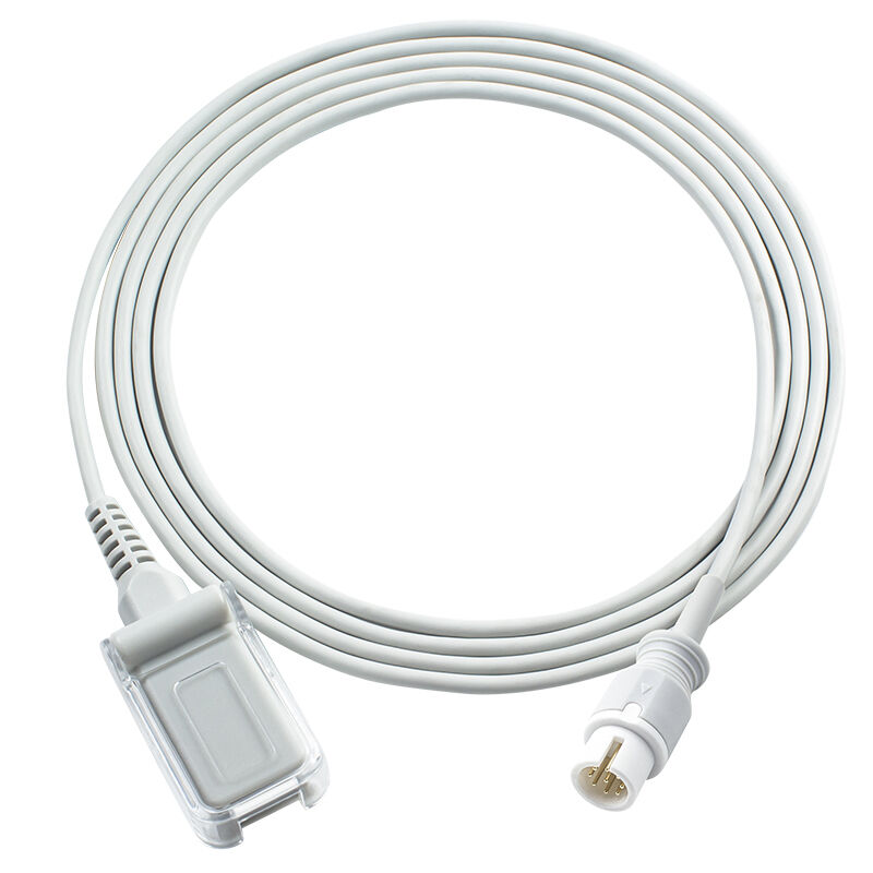 SpO2延長ケーブルは通常、一方の端にパルスオキシメータセンサーに接続するセンサーコネクタがあり、もう一方の端にメインパルスオキシメータユニットに接続するメインユニットコネクタがあります。